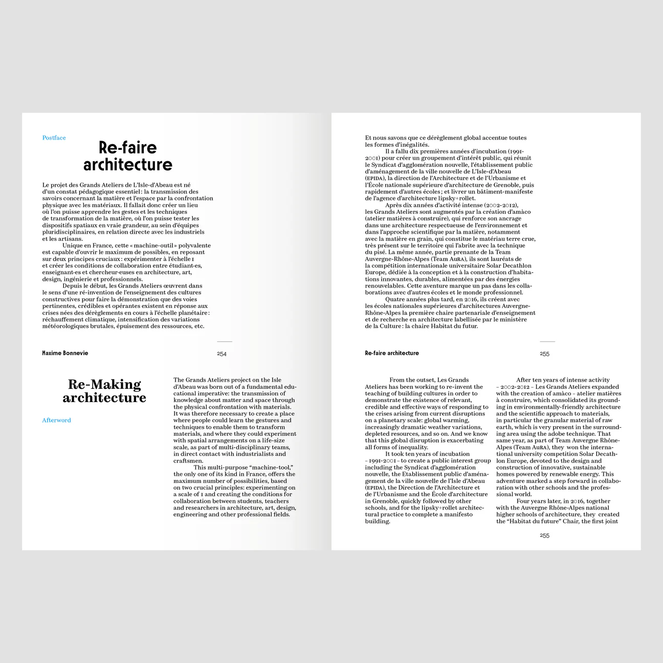 Une expérimentation “grandeur nature” et concrète avec le soutien des Grands Ateliers Innovation Architecture qui fait la preuve que pédagogie, recherche et pratique peuvent “re-faire” architecture: re-penser la pratique architecturale. Une pédagogie universitaire engagée dans une approche expérientielle, depuis longtemps, par l’École nationale supérieure d’architecture de Grenoble et de ses enseignant.es et chercheur.euses qui transforment les territoires en crise en territoires des possibles qu’il “suffit” d’inventer.