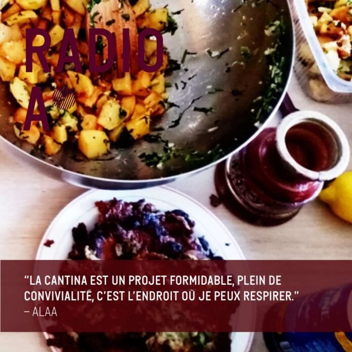 Coincée dans un espace où elle a à peine la place de se mouvoir et où il est interdit de cuisiner, Alaa est heureuse de pouvoir bénéficier de La Cantina :